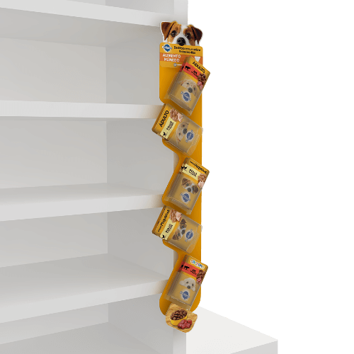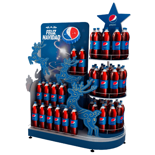 Muebles de exhibición, bandejas, ristras, material POP y promocionales