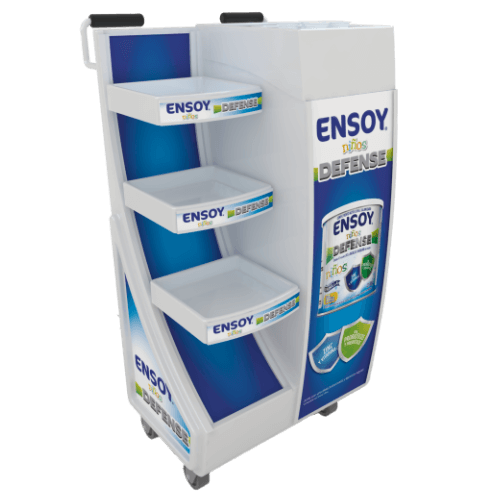 Muebles de exhibición, bandejas, ristras, material POP y promocionales