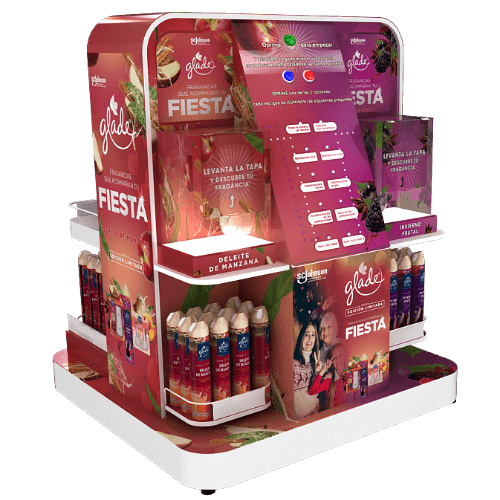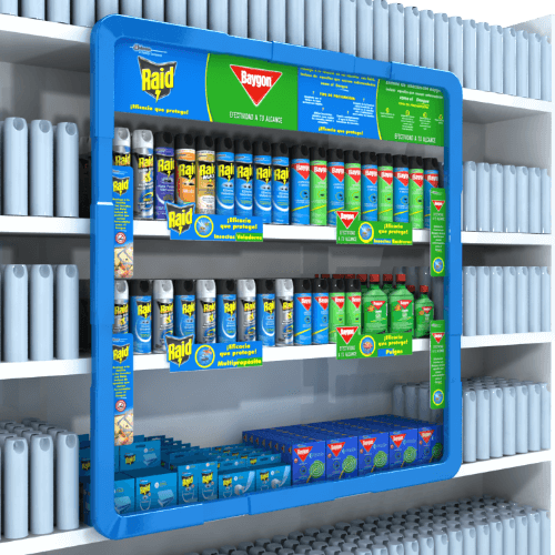 Muebles de exhibición, bandejas, ristras, material POP y promocionales