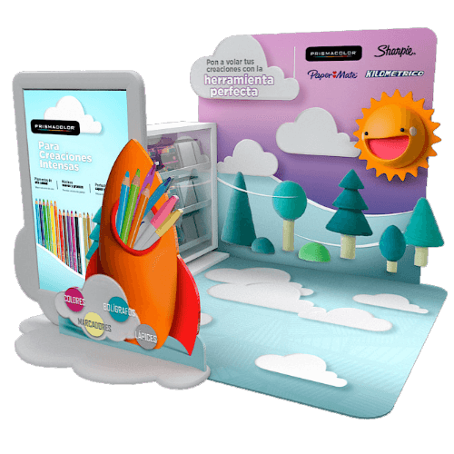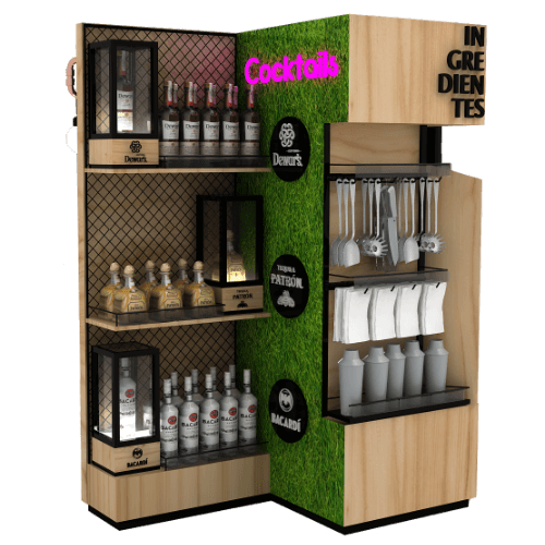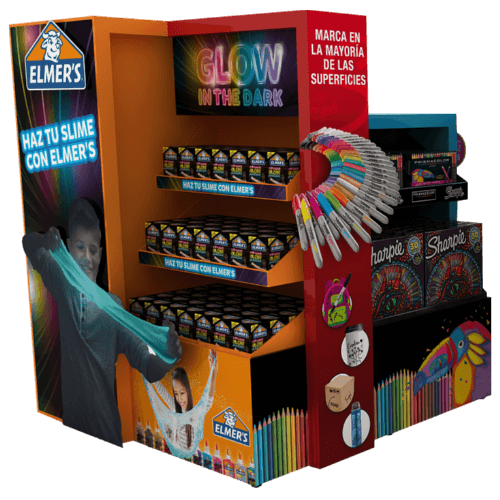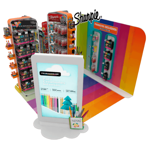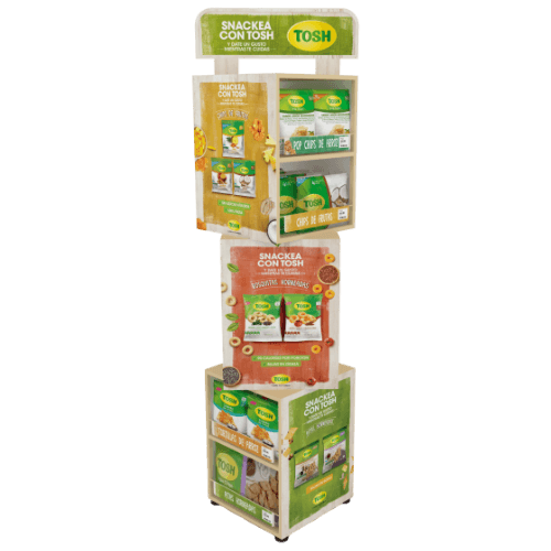 Muebles de exhibición, bandejas, ristras, material POP y promocionales